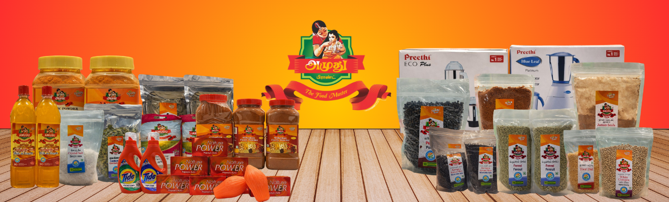 Spice Up Every Dish with Our Signature Masala RangePure, aromatic masala blends from turmeric to chilli and garam masala bringing authentic Indian flavor to your kitchen.Shop Every Grain, A Promise of PurityFrom aromatic Basmati to soft Ponni and wholesome Red Rice—our handpicked varieties deliver taste, texture, and nutrition in every meal.Shop Nature’s Purity in Every DropPure honey and golden ghee—crafted for nutrition, taste, and tradition. Boost immunity and flavor the natural way.Shop
