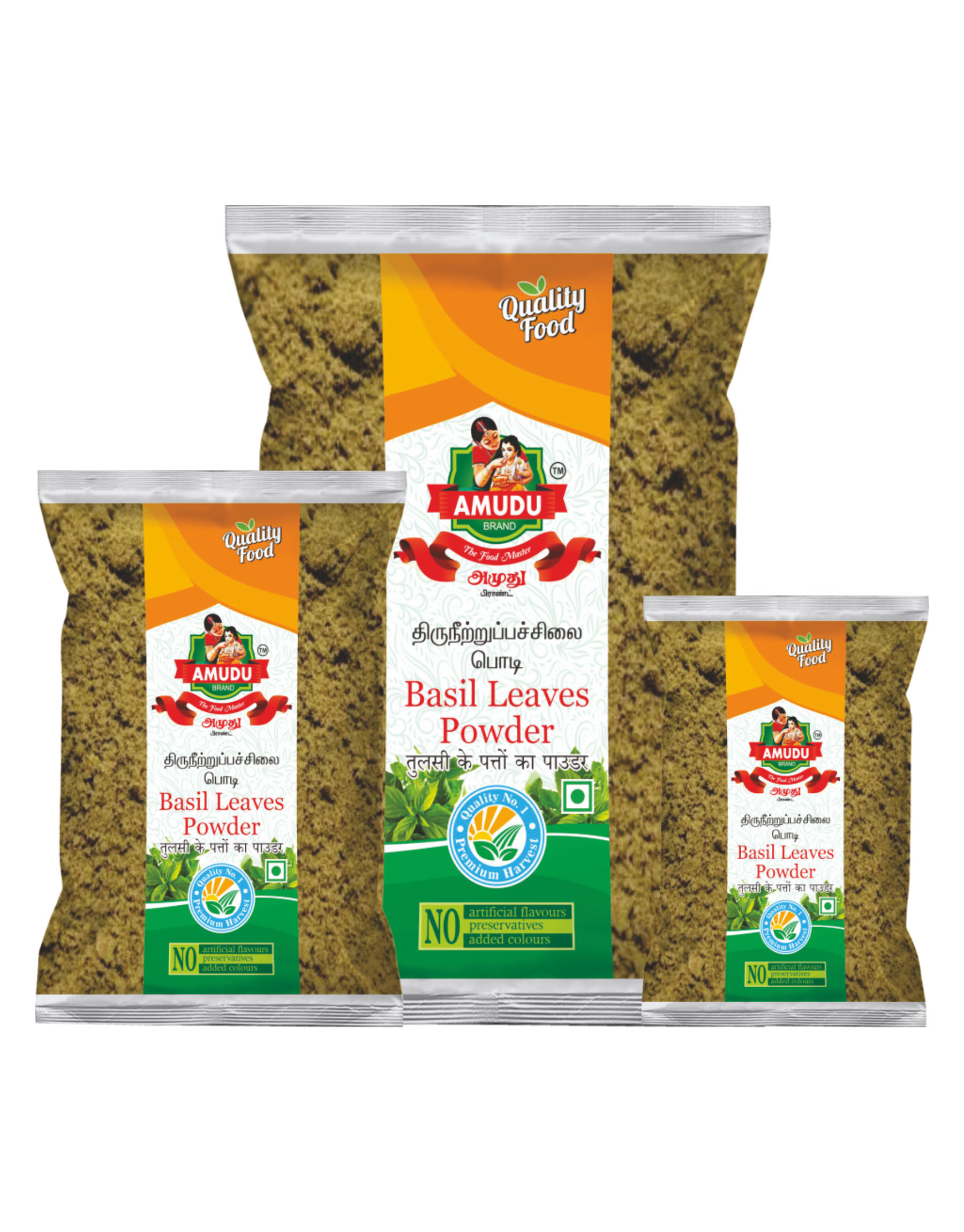Basil Leaves Powder is made from carefully dried and finely ground basil (Tulsi) leaves, known for their aromatic flavor and wide range of health benefits. Traditionally used in both culinary and Ayurvedic practices, basil powder supports respiratory health, boosts immunity, and aids digestion. It can be added to soups, herbal teas, sauces, and seasoning blends, or used in homemade skincare and wellness preparations. Our basil powder is 100% natural, free from additives, and hygienically processed to retain its natural color, aroma, and therapeutic properties.